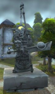 The victorious champions returned to Dalaran, where a golden statue was built in honor of the heroes who died. At the very top of this monument stands a statue of Tirion, Ashbringer raised, standing over a shattered Frostmourne.